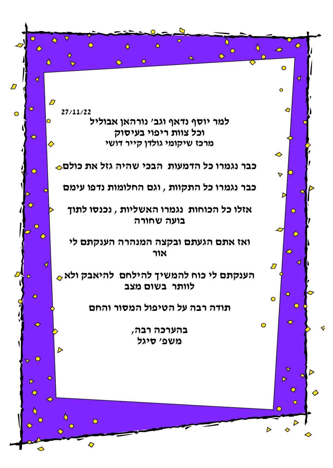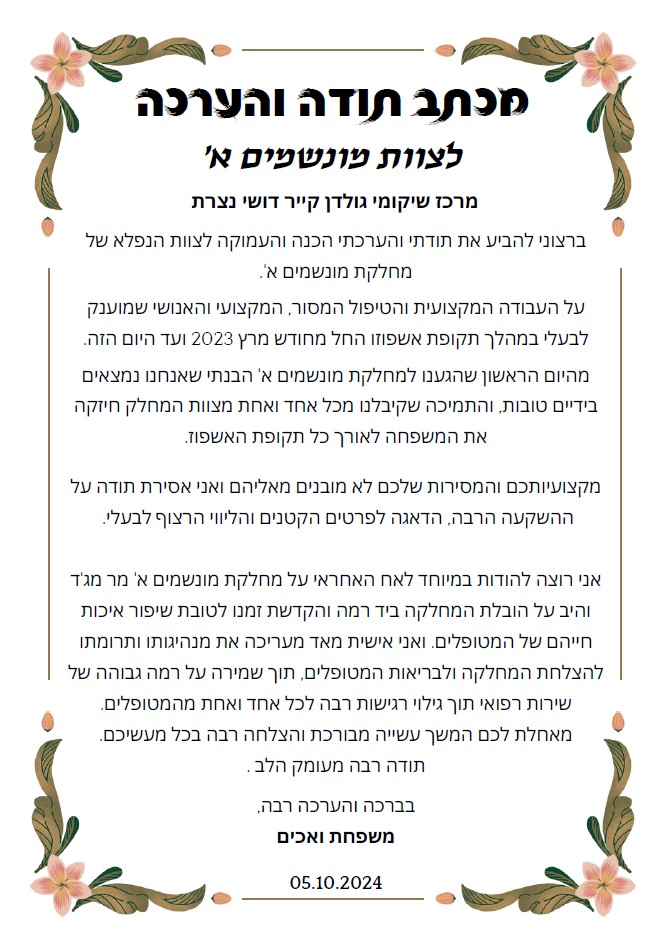 גולדנקייר דושי נצרת | דצמבר 2024