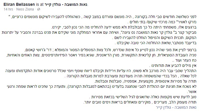 נאות המושבה נס ציונה מוכנים לקורונה: "מחבקים דרך חליפות המגן" קרא עוד